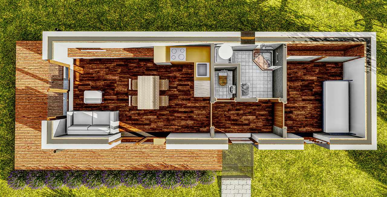 | ✓ Pozinkovaný plech ze spodní části domu - ochrana proti vlhkosti, hmyzu a hlodavcům. |